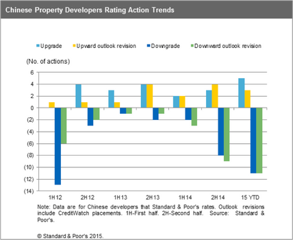 For the first 10 months of 2015, residential housing sales increased a healthy 18%. Average selling prices (ASPs) in many cities moved into positive month-on-month growth. We estimate that most of our rated developers will be able to meet their annual targets in 2015, paving the way for credit profiles to stabilise. But individual players in the sector will likely face some rocky patches.
