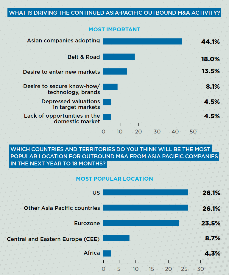 The region’s outbound M&A investment levels will grow faster than inbound, in part due to positive spill over from China’s Belt and Road campaign to boost cross-border trade but also as a result of local companies seeking to expand globally, our annual survey showed.