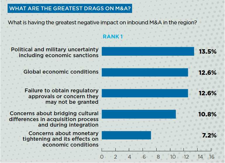 Given these potential destabilisers on the horizon, it is perhaps surprising that the majority of survey respondents look forward to a better year for M&A deal-flows.