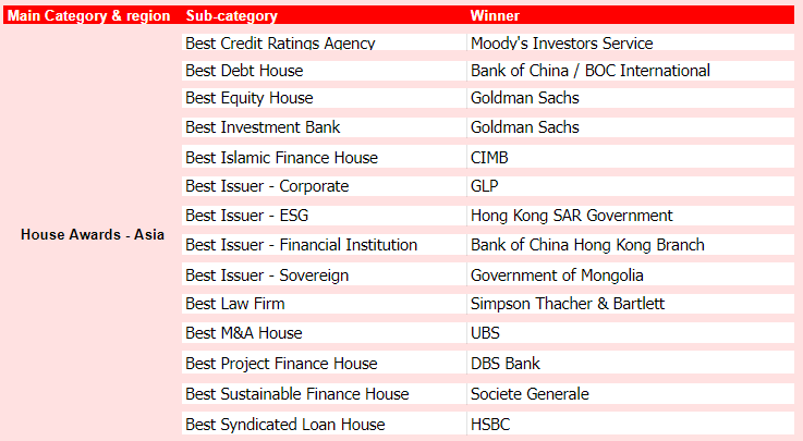 Our annual Achievement Awards recognise excellence across Asia’s financial markets. Covering three key categories - Deal Awards, House Awards and Regional Deal Awards - our Achievement Awards highlight the accomplishments of key players across Asia and Australia/New Zealand, that have shown dedication to their sector.