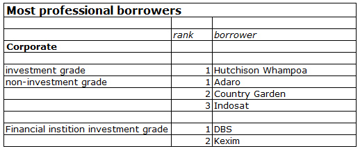 Not surprisingly, some of the borrowers in the region come up year in and year out as favourite choices. Hutchison Whampoa always makes our list for the best borrower in Hong Kong. Similarly, DBS, Petronas and ICICI are always in the final cut.