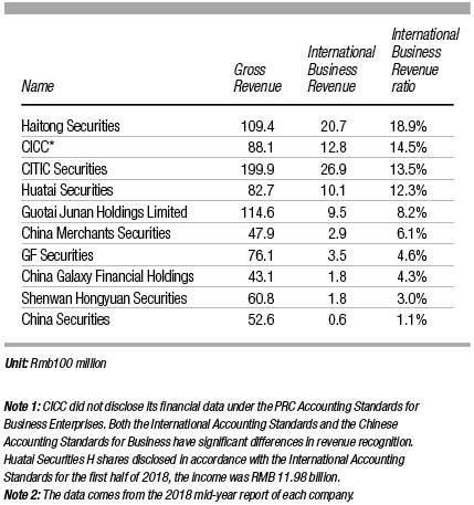According to the interim financial reports for the half year of 2018, income generated from HTSC’s international business ranked fourth among the top 10 with international’s revenue accounting for 12.3% of HTSC’s total revenue, up 8.9% on the year before.