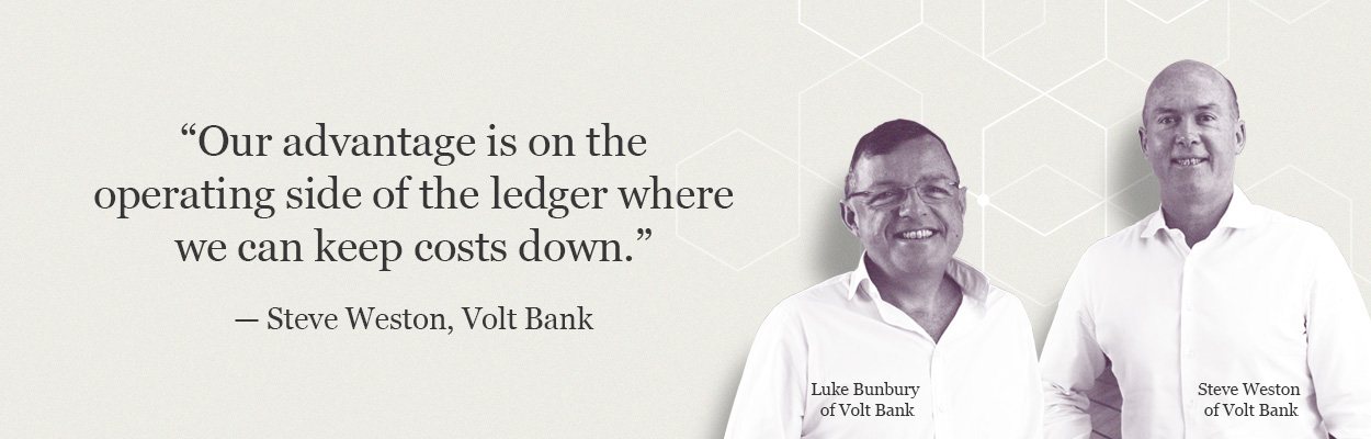 Volt is also run by former bankers. Steve Weston and Luke Bunbury worked together at St George Bank (part of Westpac) and Challenger Financial Services, where they built a mortgage business in the mid-2000s.