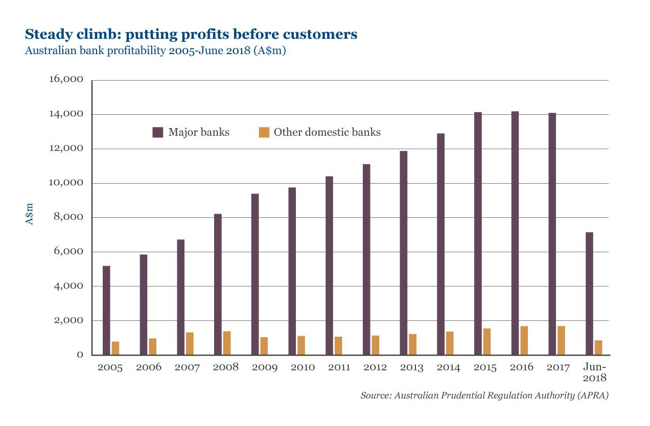 Much of the evidence tabled at the Royal Commission related to the four biggest banks – ANZ, Commonwealth Bank of Australia, National Australia Bank and Westpac – who were shown to have used their size and distribution power to stifle competition. Customers complained bitterly about being charged high fees for average service, or in some cases, no service.