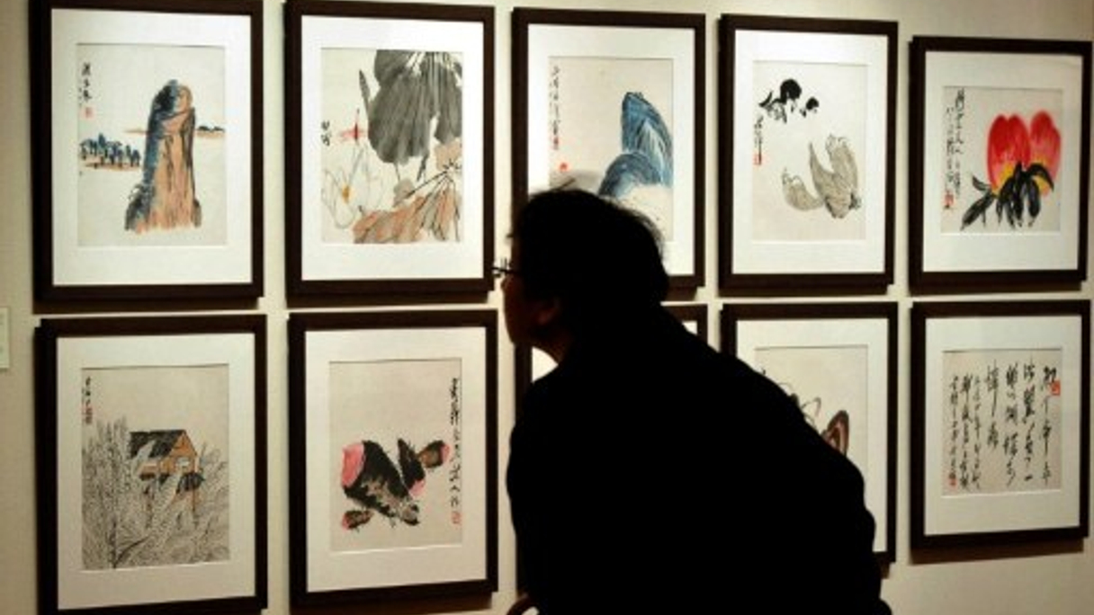 Qi Baishi's art on display during a preview in Beijing