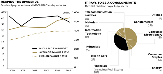 Ranking fifth is China's Hui Ka Yan, who controls the giant Evergrande real estate company, again the country’s richest person based on dividend income. He has stated his intention to relist his debt-ridden firm in Shanghai, believing Evergrande is undervalued on the Hong Kong exchange.