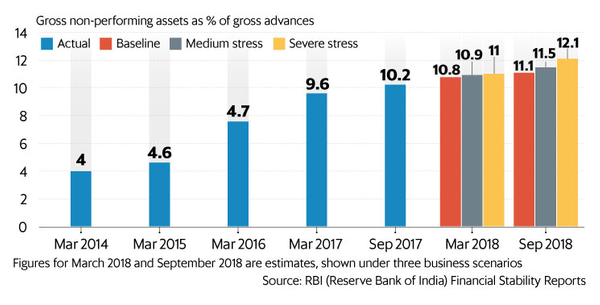 As of the end of September last year, the overall non-performing asset ratio of Indian banks stood at a staggering 10.2% – the world’s second-highest behind Italy, according to the RBI. China, which India has always sees as a key competitor globally, has an NPL ratio of just 1.7% (if it's data is to be believed).