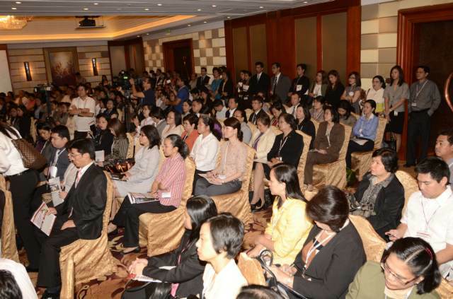 A capacity audience listens intently