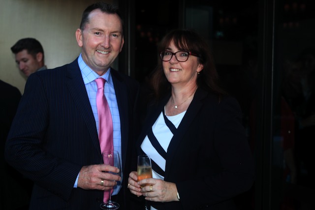 National Australia Bank’s Brad Scott and BHP Billiton’s Alison Belot enjoy pre-dinner drinks