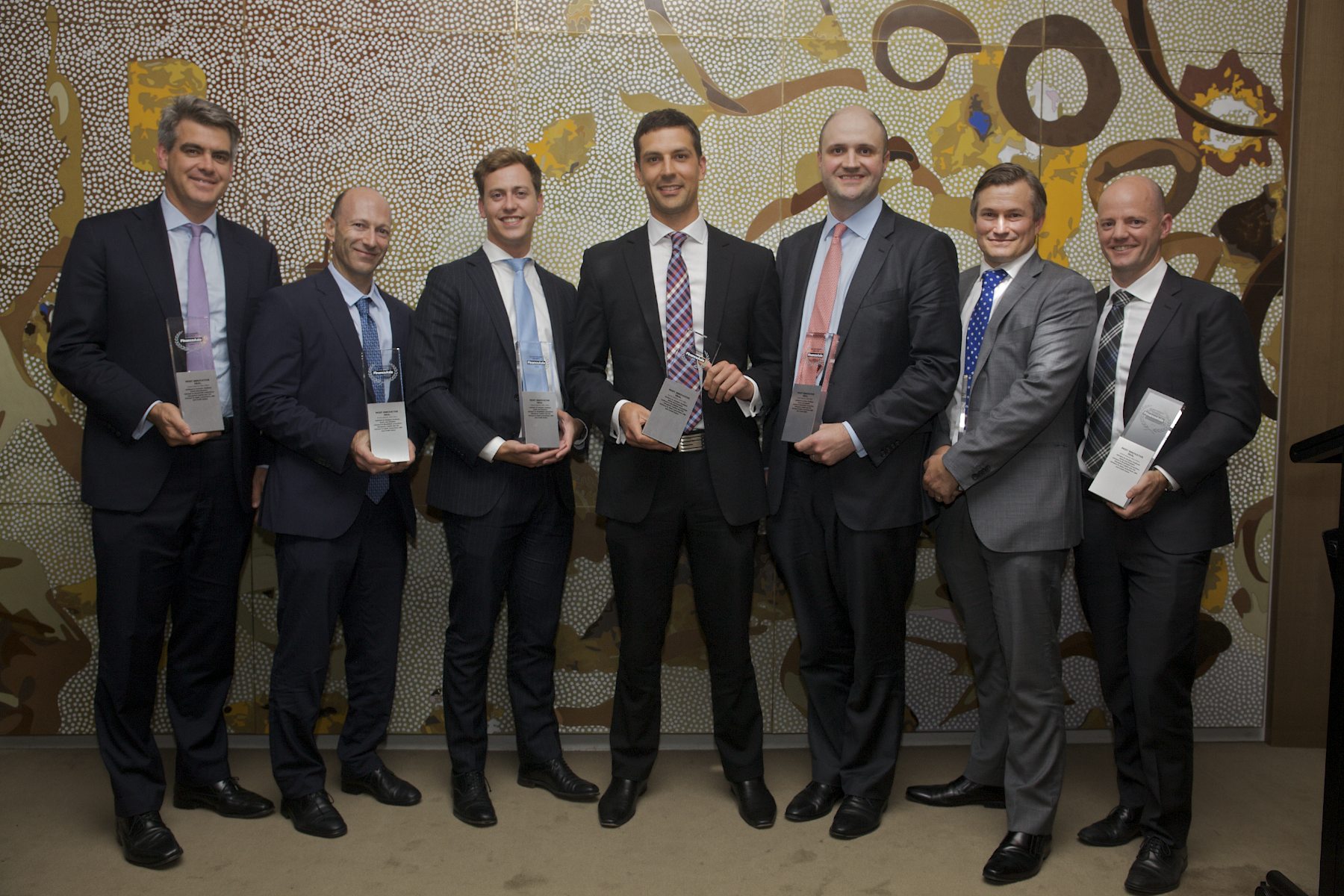 Qube's Paul Lewis and Brookfield's Ray Neill with advisors collect the Most Innovative Deal award