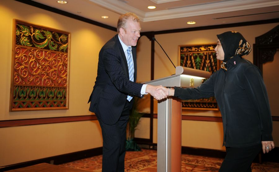 Niken Rachmad, Director Communications, HM Sampoerna, shakes hands