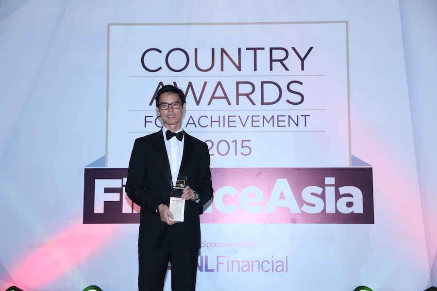 President and CEO of HSBC China David Liao poses with the bank's Best Foreign Bank in China plaque.