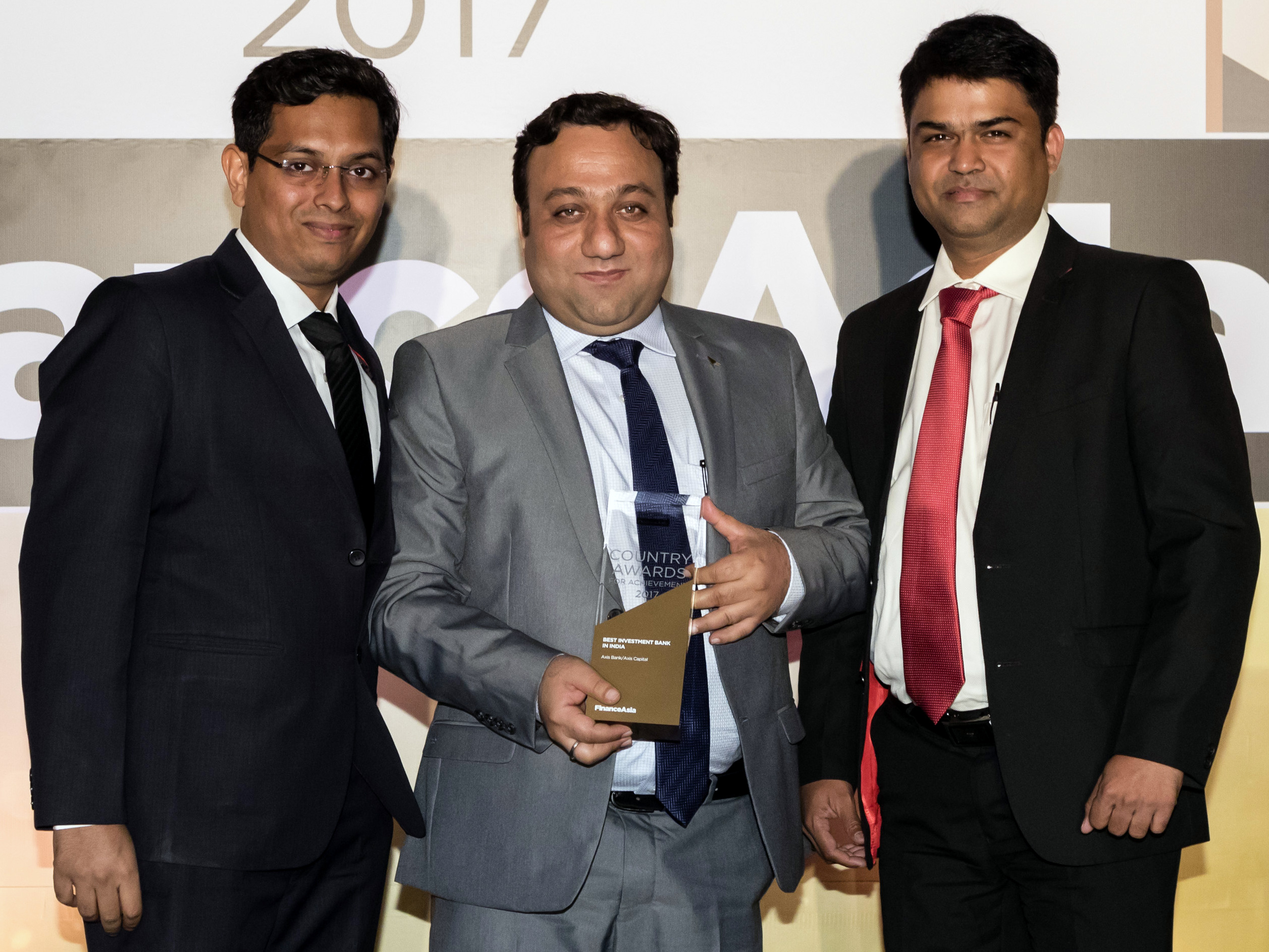 Naveen Saproo, Shailesh Nerurkar and the team from Axis Bank and Axis Capital accept the award for the Best Investment Bank in India