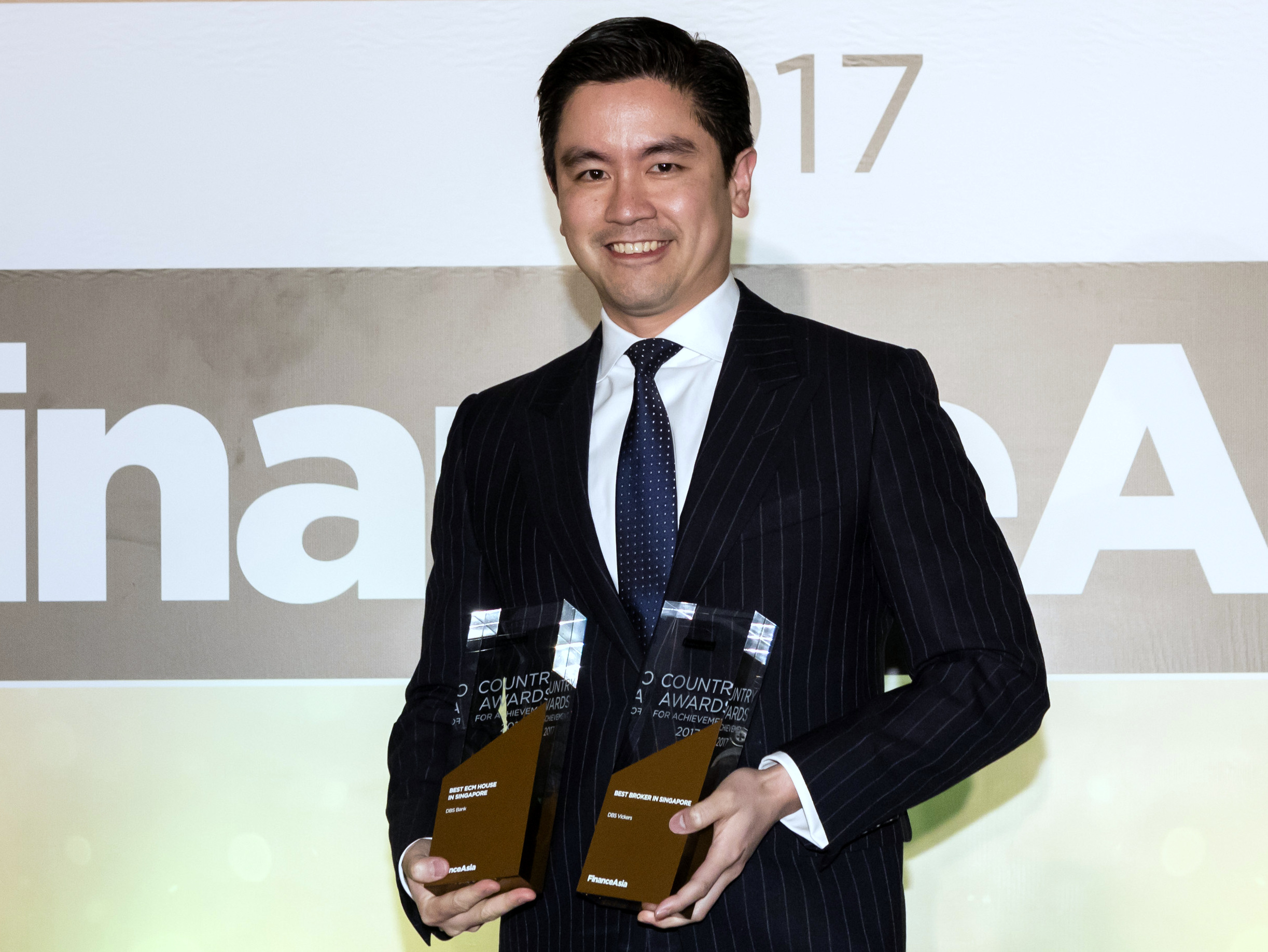 Art Karoonyavanich from DBS Bank and DBS Vickers accepts the Best ECM House and Best Broker in Singapore awards