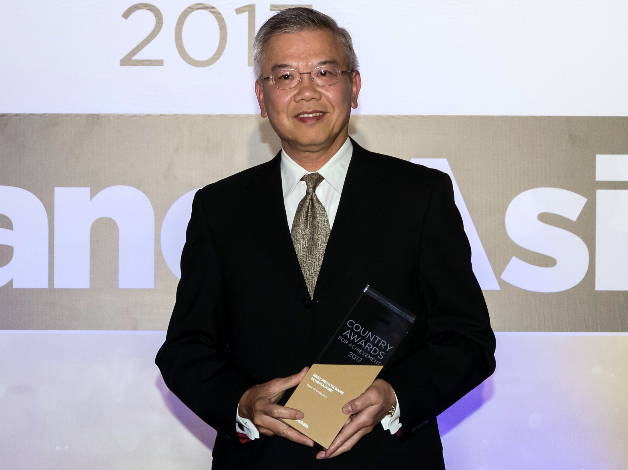 Sermon Kwan of Bank of Singapore collects the award for the Best Private Bank in Singapore