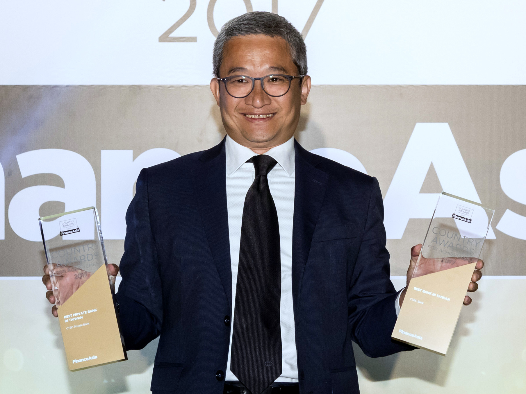 Ringo Lau from CTBC Bank and CTBC Private Bank accepts the awards for the Best Bank and the Best Private Bank