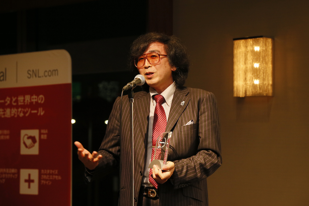 Yoshiyuki Sankai CEO of Cyberdyne addresses FinanceAsia's awards cocktail reception