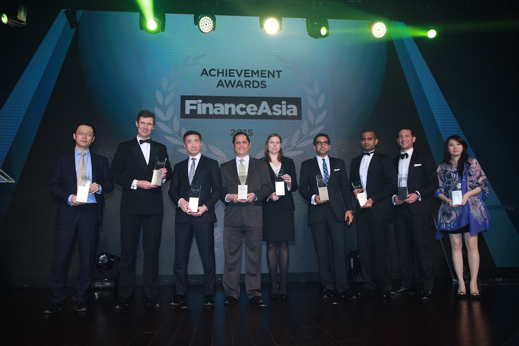 Guests including Roberto Tan, treasurer of the Republic of the Philippines, and represntatives of Citi, Credit Suisse, Deutsche Bank, Goldman Sachs, HSBC, JP Morgan, Morgan Stanley, Standard Chartered and UBS collect Best Sovereign Bond for the Philippines' $2b 25-year issuance