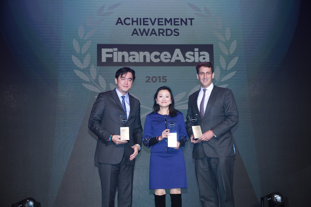 Joseph Chee of UBS, Angela Hu of JP Morgan and Arthur van Dijk of Macquarie collects the Best FIG Deal for Haitong Securities' $4.3b H-share private placement