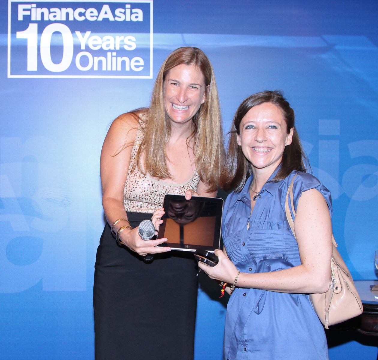Caroline Lacocque from Swift wins the top prize of the evening รป an iPad imported directly from the US