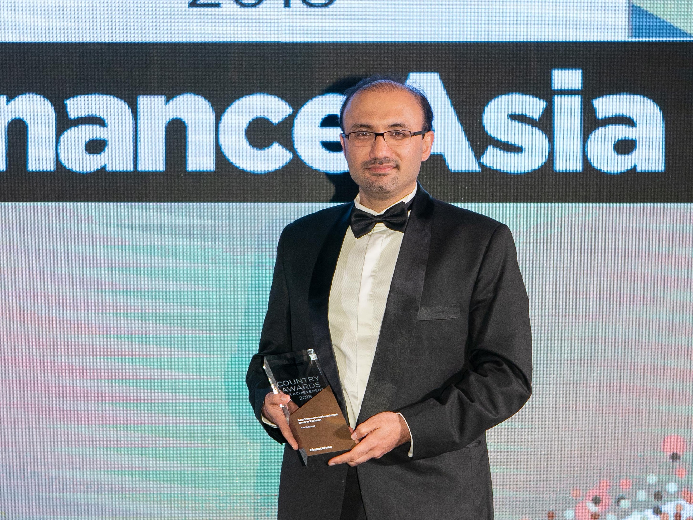 Rehan Anwer from Credit Suisse collects the ward for Best International Bank in Pakistan