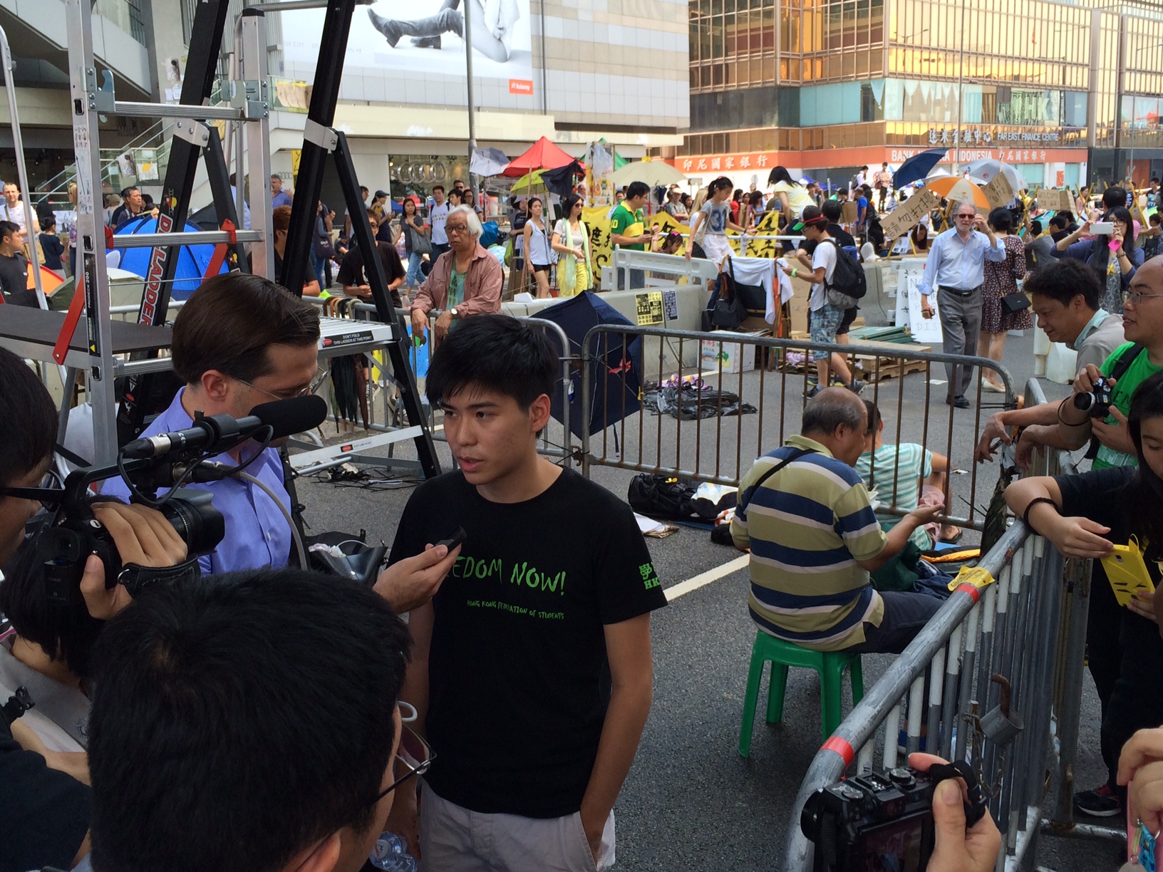 Lester Shum, deputy secretary-general of the Hong Kong Federation of Students, visits Admiralty on Sunday
