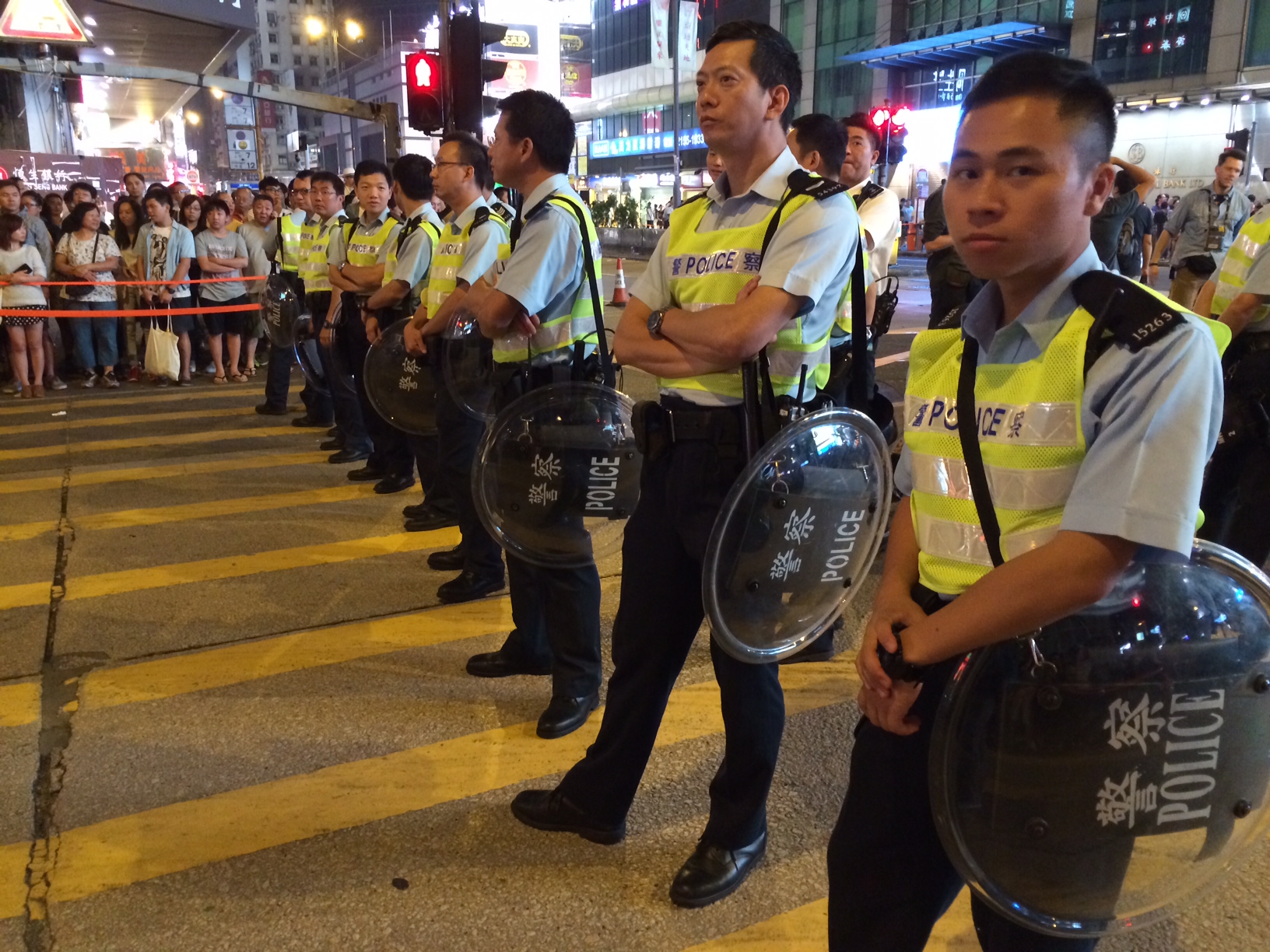The Hong Kong police confront protesters on Nathan Road, Mong Kok