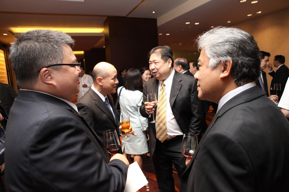 Jose Crisol and Francis Suarez from GT Capital with Rene Leveriza from Maybank ATR Kim Eng and Gil Gonzalez from SM Investments